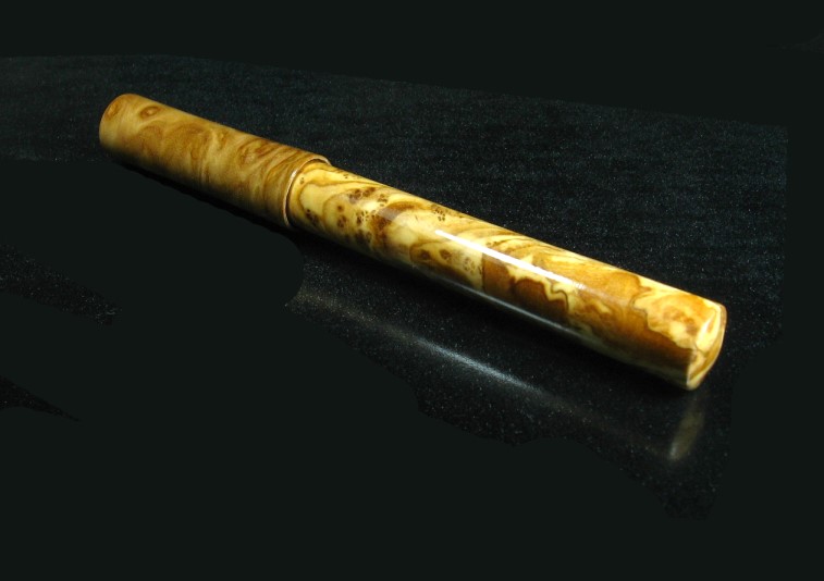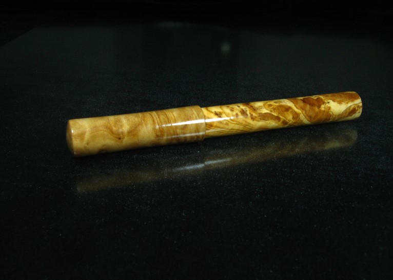 Wow, I have herd the pen is mightier than the sword, this hearkens to a katana in the way the cap and body mate. It is extremely beautiful. Seriously, well done.