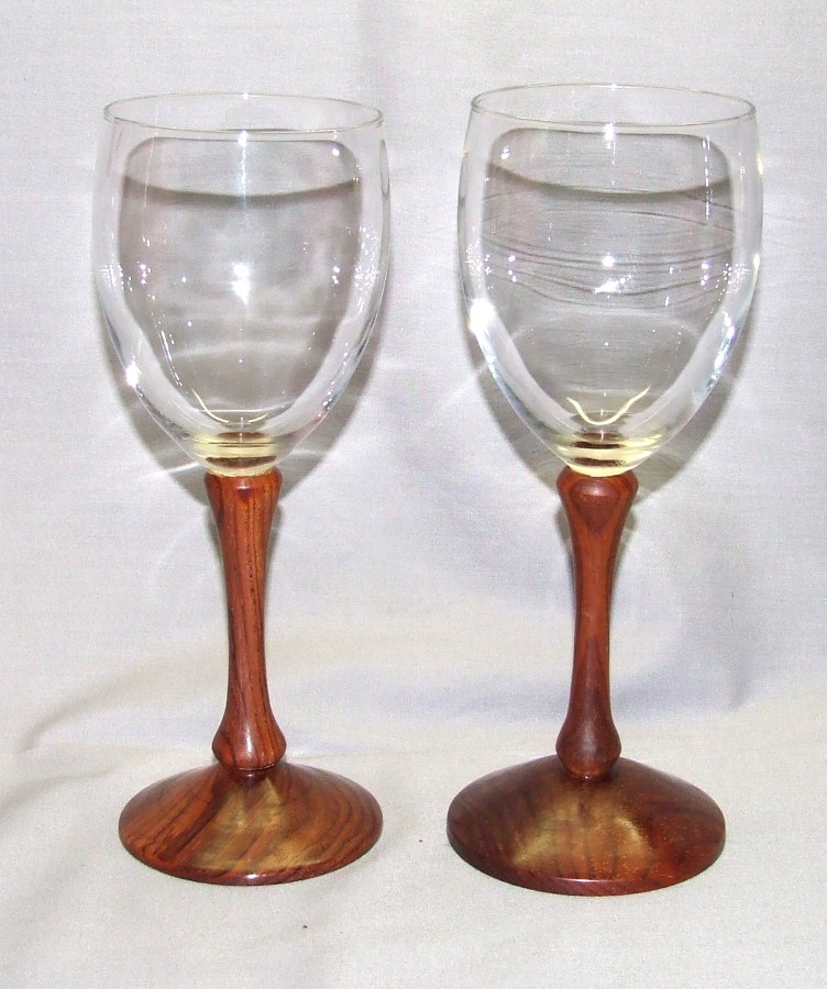 The last is a set on cocobolo stems... the glasses are 8" tall and finished with the Dr. Woodshop wood finish.