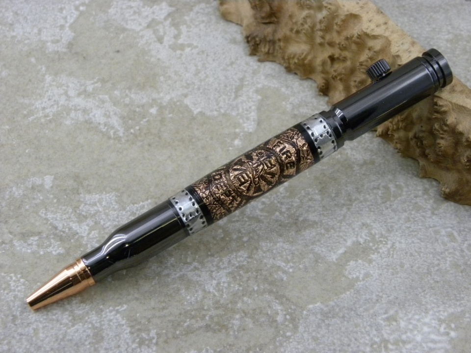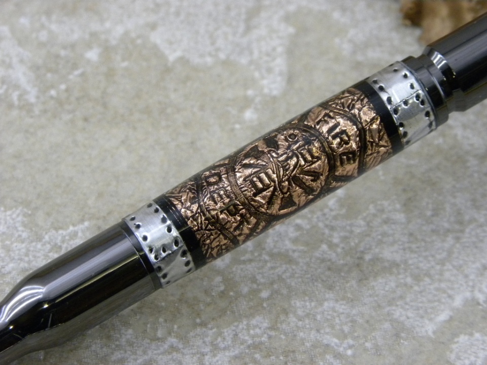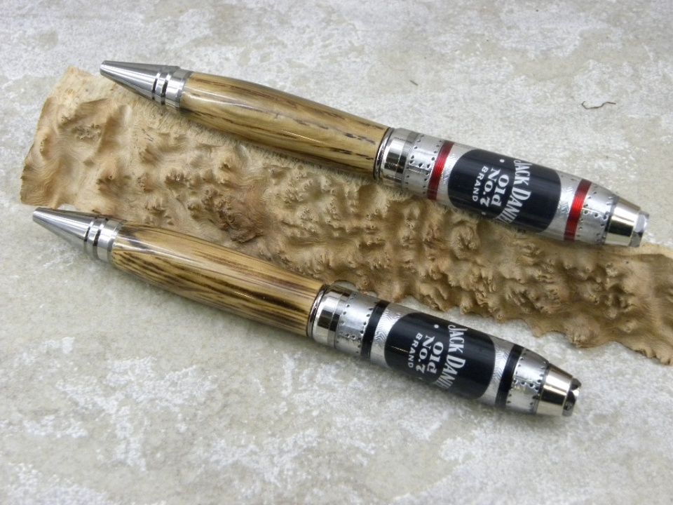 Cigar Pens - Platinum/Black Ti - Jack Daniels Bottle Top with a Jack Daniels Barrel Blank on the bottom