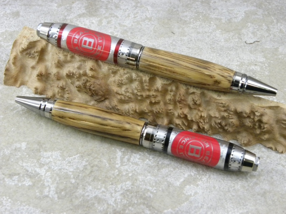Cigar Pens - Platinum/Black Ti - Jim Beam Bottle Top with a Jim Beam Barrel Blank on the bottom