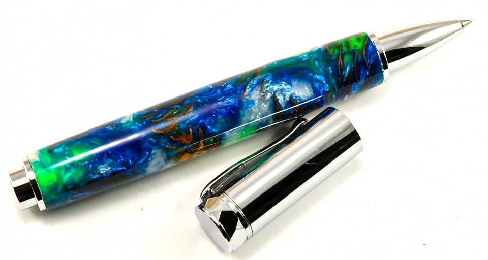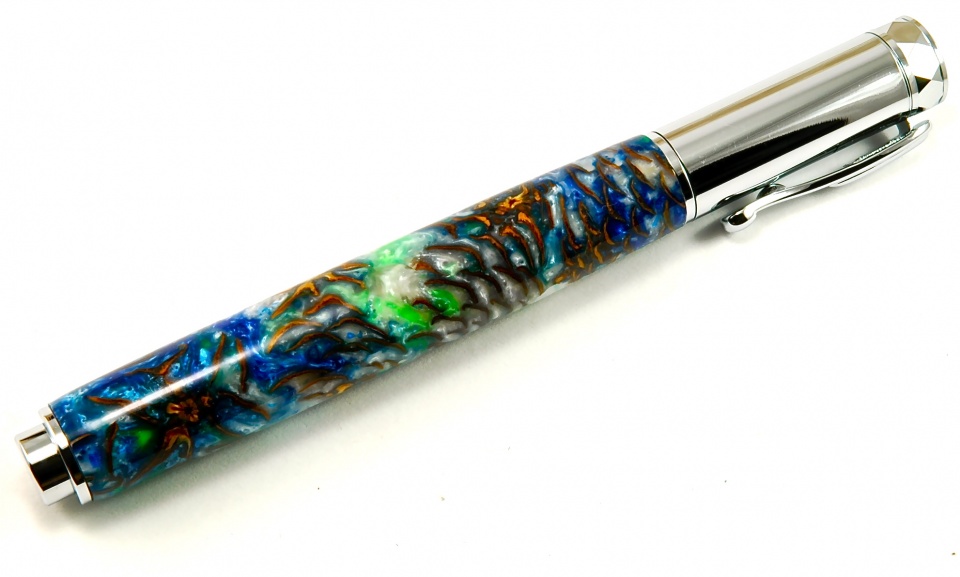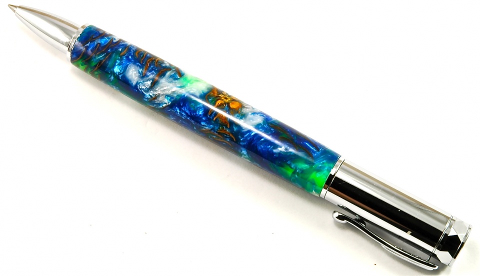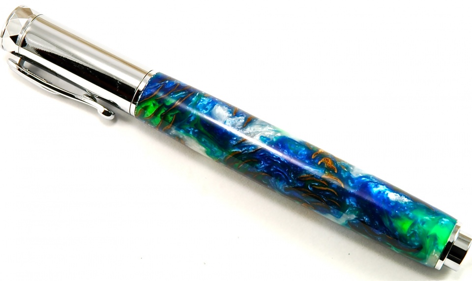 ) that I thought it best paired up with the Zen kit from CSUSA. Once again, another mini-pine cone cast with Alumilite / pressure pot / CA finish +15 coats and a good wet sanding with MM 1500-12,000. My wife said it reminded her of those amazing Space Station pictures of the oceans….