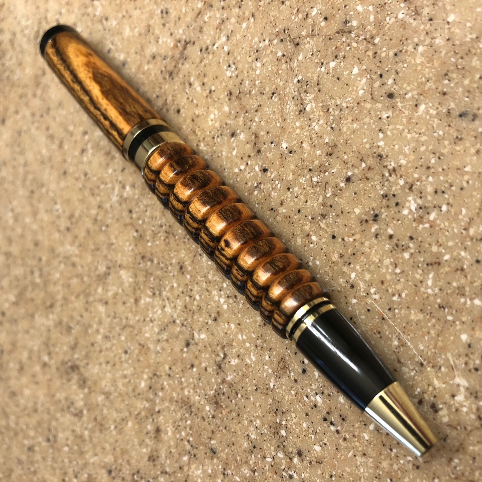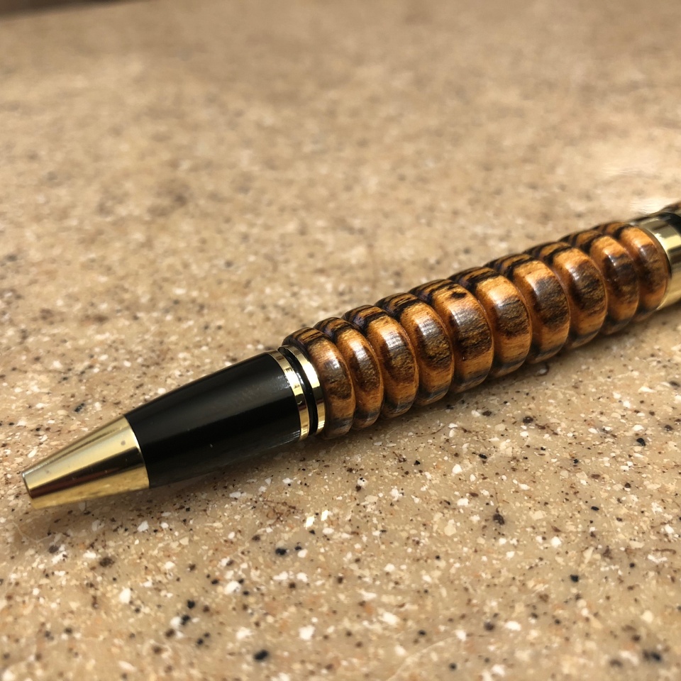 Here's one for you - Classic Twist 24kt Gold - Bocote wood - barrel design represents the "rattles" on a rattlesnake. Trying to eventually get to a snakeskin cap and a barrel that most closely resembles rattles.