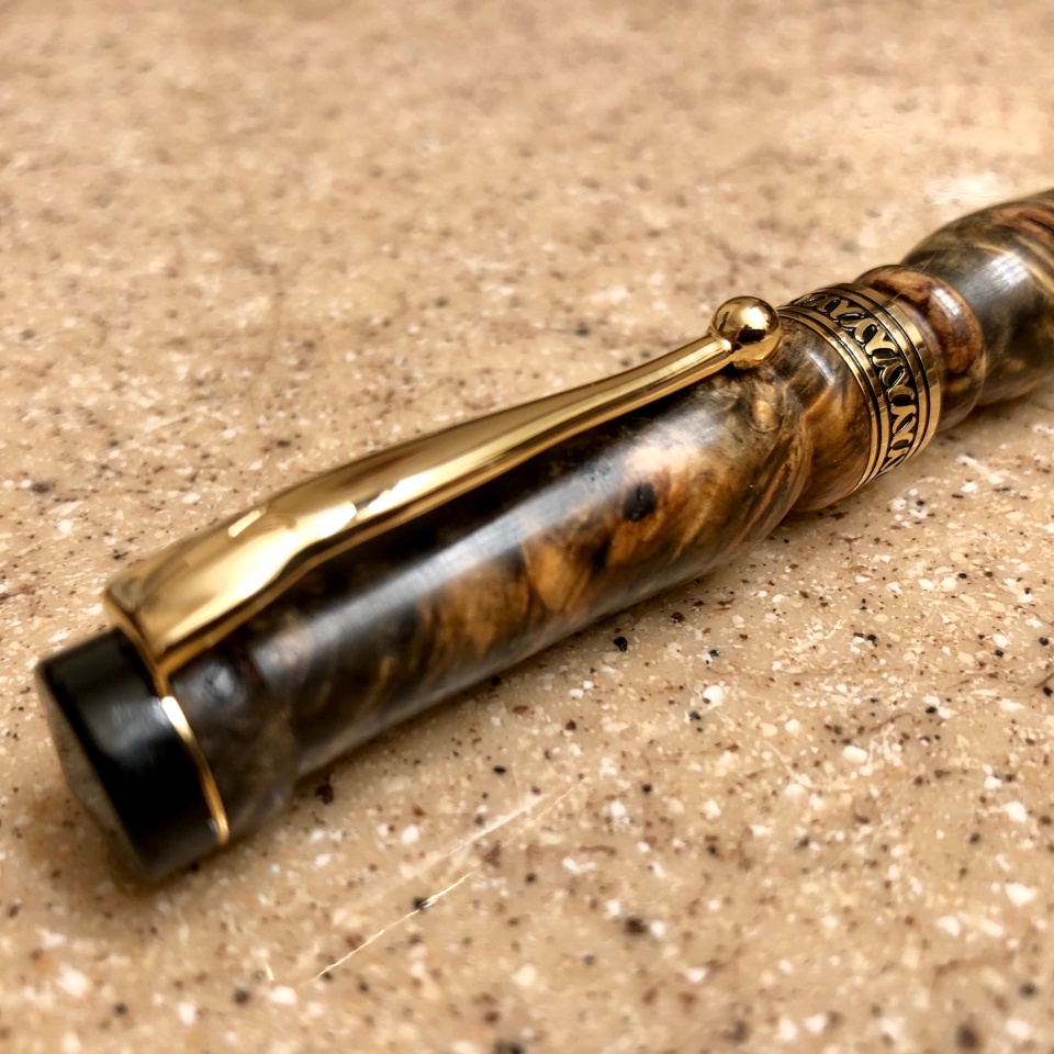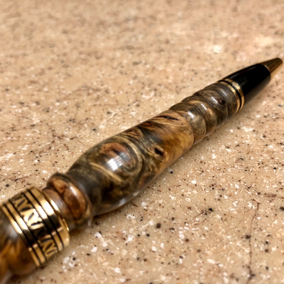 Take a look! Artisan Americana (from CUSA) 10kt Gold - wood is a Stabilized Buckeye Burl - Exhibition quality.