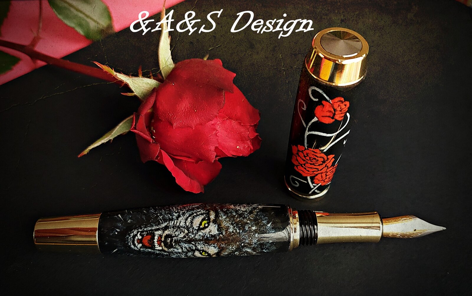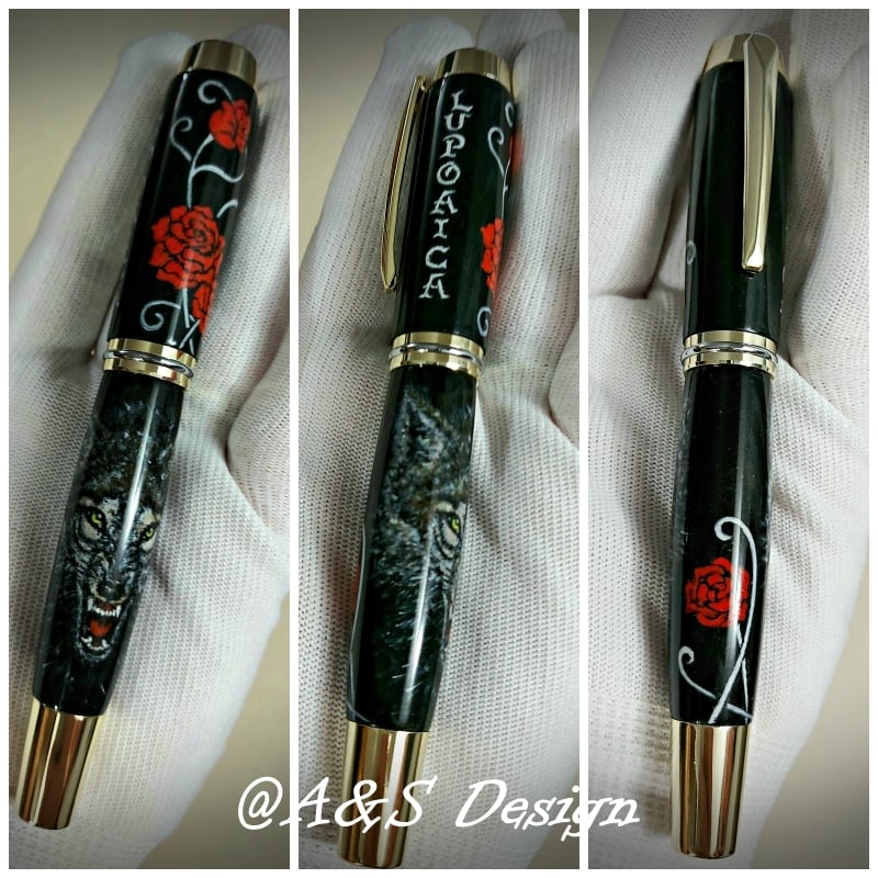 , fountain pen, on a large Executive kit. The wood I used for turning was beech. My only contribution was to turn and finish it. If turning it was easy, the painting took around 2 weeks to be done, numberless (well, probably around 20) layers of different paint, different paint types, extremely care for their compatibility and how they look one on top of other (due to their transparency and translucent), a real pain in..... Finally, the client was extremely happy and that's all that matters.