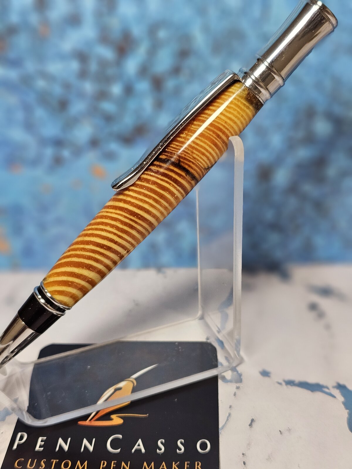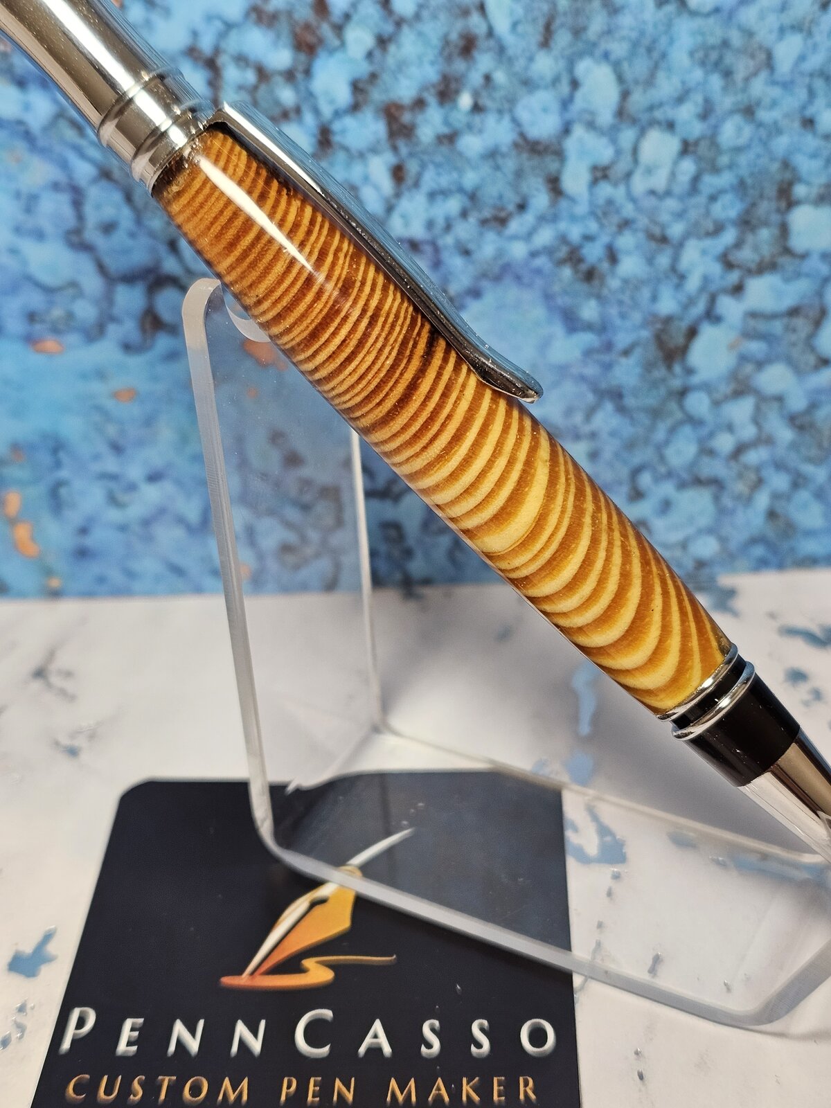 Pawhuska OK, is in the map due to the Pioneer Women. If you don't know who she is your wife will. Anyways, a friend of mine has been working in that town having to remodel some of the old buildings there. I asked him to bring me some discarded wood, anything to make a pen. Well this is what he brought and this is what I made. I have no clue what kind of wood this is, and nothing was altered on the wood.