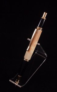 Since I messed up a casting that I had spent a lot of time on last night, I decided to make a couple of pens as therapy this morning. Pens were made from some blanks that I mixed and poured. The first pen is a gold click gatsby with a HF powder coat mix that was intended to look like alabaster. The second one is a pearl ex mix on a Le Roi v2.