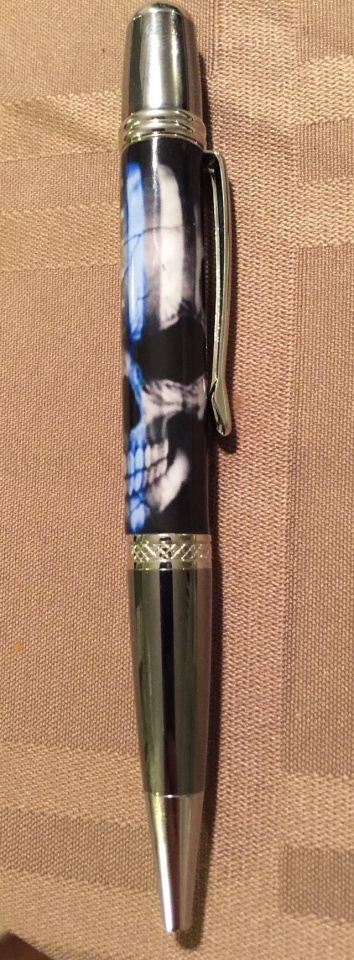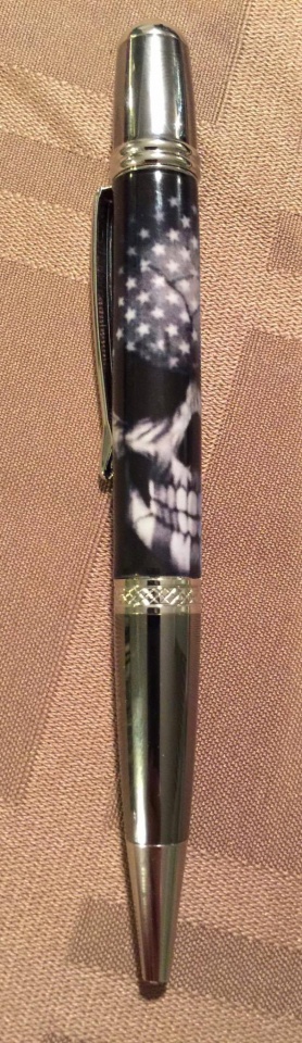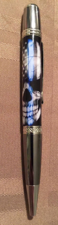 Nice job on the pen! Just from a message point - I understand the thin blue line as representing the police separating the good people from the bad. But what is the theme or message of the Punisher connected with the thin blue line?