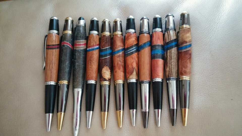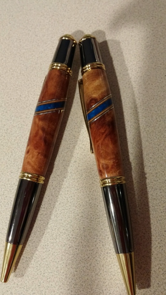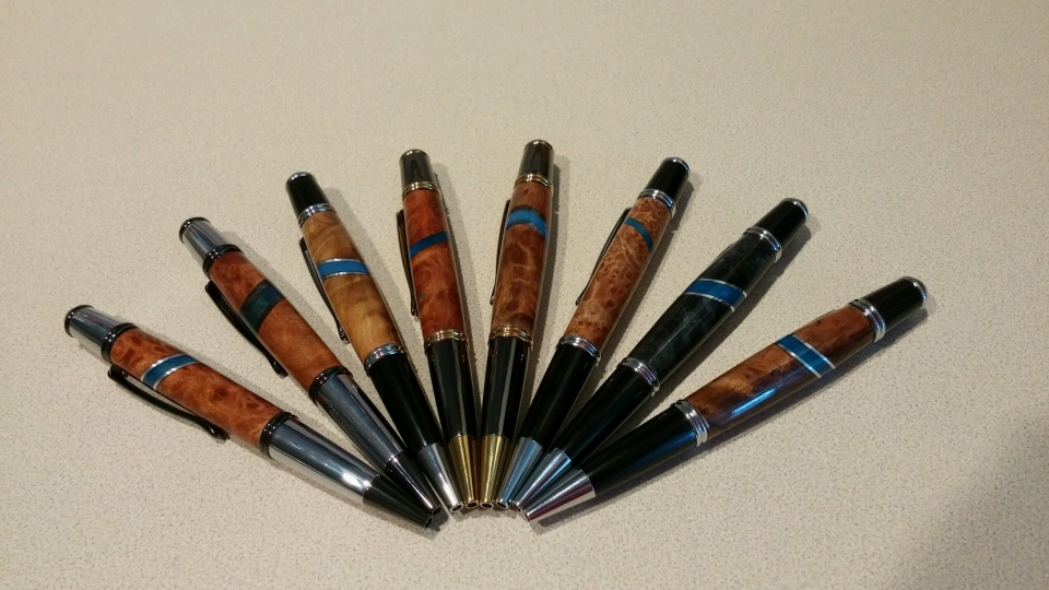 Here are a few of my versions of the Thin Blue Line. All have been very given to officers as I happen across them. I have about 40 more kits to turn at present.