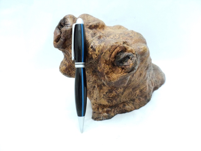 Designer on thin blue line...this stuff was the most difficult material that I have ever tried to turn...I first blew the end out trying to square up the blank; ( i cut 1/8" off & resquared) then I started out with a round carbide & it kept wanting to grab & chatter...after getting the blank round, I ended shaping it with a skew..this was the 1st time I have ever used a skew to complete a blank! Hopefully it is going to FL next week to a distant cousin that I haven't seen in 30 years