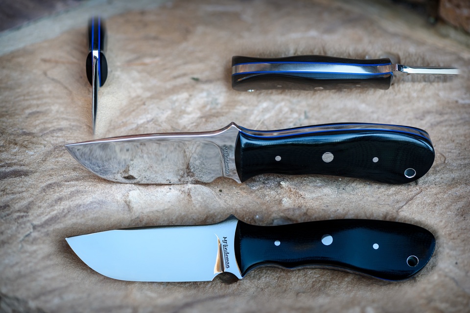 440C stainless steel hollow grind, black G10 handle with blue G10 liner. Designed to represent the fine men and women that work so hard to protect our communities. Sheath has not been made yet therefore I have not put the cutting edge on the blade yet. Thanks for looking.
