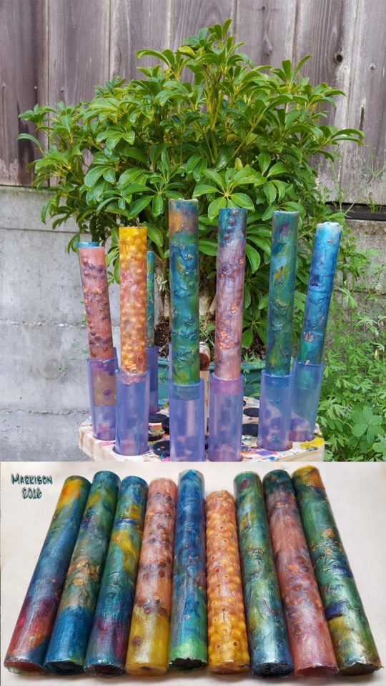 These clear-PVC pipe cast PR blanks include amber and sienna pigment-tinted 5mm natural wood beads, easily positioned with wires (since I could see them). I did (preemptively) spray the pipe interiors with Stoner release, but probably unnecessary for PR.