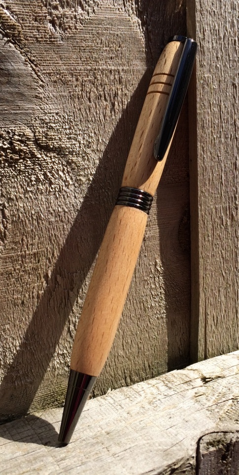 Very nice work with this pen! The clean lines of the pen allow the tiny flecks in the beech to pop! Also like the detail lines near the clip.