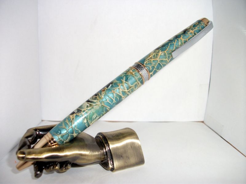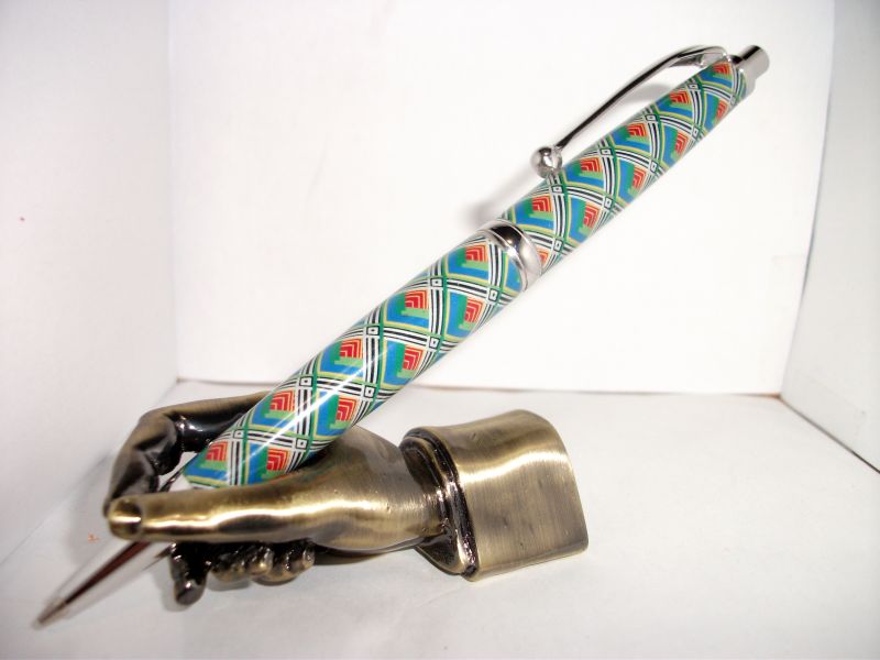 next up is a varied chevron double crosswrap rhodium comfort pencil.I tried to use parrot colors.I casted the wrap in Liquid diamonds epoxy.
