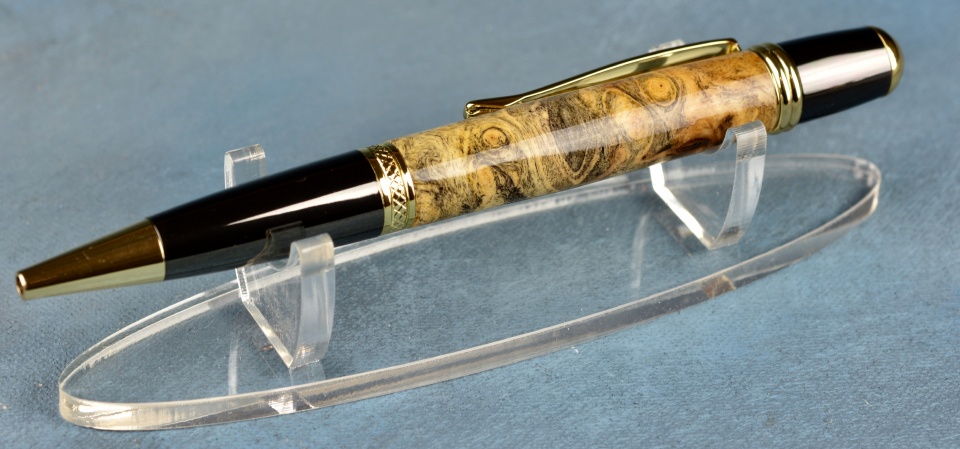 Buck eye burl never ceases to amaze and impress me. I wanted a buck eye pen and just grabbed a blank from a large shopping bag of blanks. The more I turned it the better it looked. After CA glue it looked pretty darn pretty and I decided to share it. No matter how you turn it you find some figure worth examining more. I had the Nikon out so a Bethlehem olivewood and a copper rhino plastic with the copper kit came along for the ride.