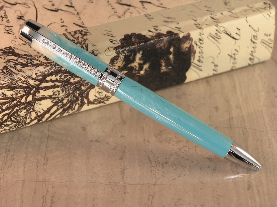I had a commission for a Princess Pen in Tiffany Blue so I contacted Bob Dupras to see if he could mix something for me. I asked for 3 solid TB blanks and he was kind enough to throw in the blank that I eventually used, with a Pearl White fade.