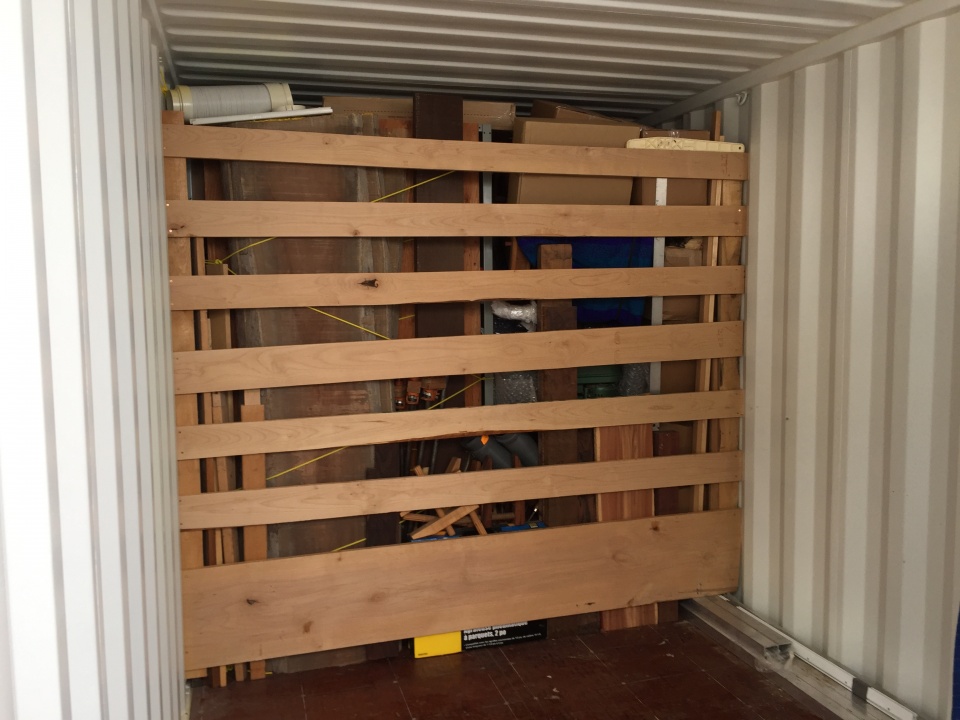 Now when you rent a container you can't modify them with more tie down anchors or screw things to the floor. That leaves you trying to lash everything down using the provided anchors, 5 along the top and bottom on each side. We'll that just ain't enough. So my tip to those of you that may choose to move this way is to build a wall / fence at intervals that suits what you are loading as you go. Once you place a table saw, bandsaw, and compressor for instance you pack in and around them and on top. Then place a board just long enough to slip into the metal folds and screw it to a couple vertical ones at the ends. Add more and pack and stuff as you go. If you cut a slight angle at each end it is easier to insert and drop them in place. When done everything in that section is going to stay put when they drag the container onto the truck. Put a fence up every 4' to 6' until you reach the end. Another advantage of the walls is that you can tie things to them to hold the in place. Everything I packed stayed put in both containers after being picked up, trucked here and dropped off at the house. It wouldn't have without the walls.