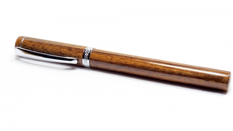 So I turned this pen out of plain jane Walnut last weekend, spent the better part of the week finishing it with poly (wipe on coat in morning & evening) and after pressing the parts in I was very disappointed to see the grain didn't line up. The pen was put together on a drill press and thought I had the grain lined up but i clearly screwed this up. One side isn't too bad but the other side the grain is very noticeably off