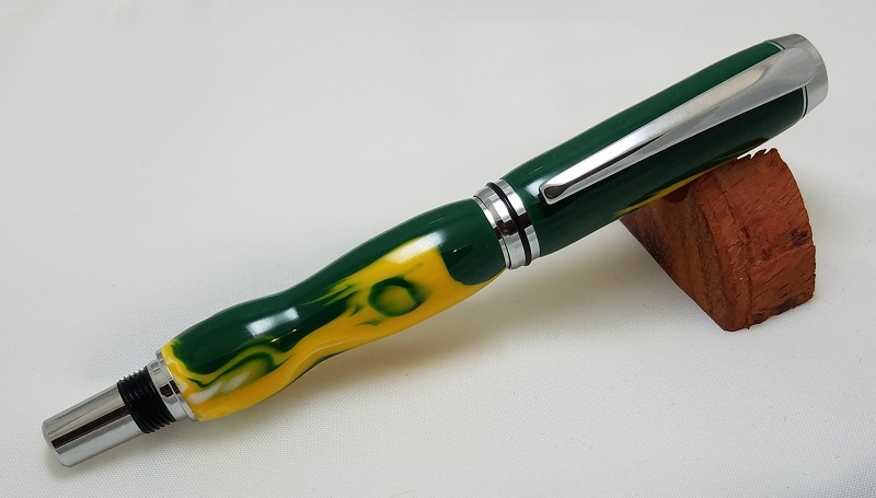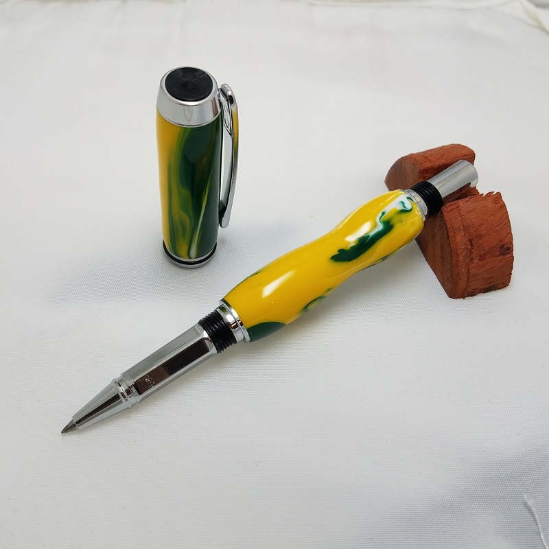 The blank is from Exotic Blanks. The NFL team from the Bay of Green. Baron roller ball. My skew caught on something in the middle of the lower tube and instead of trashing the thing, I just worked a little form into it. I really like how this turned out. Need to get some more made for a craft fair in my area. I expect these to be big sellers with the upcoming NFL season approaching.