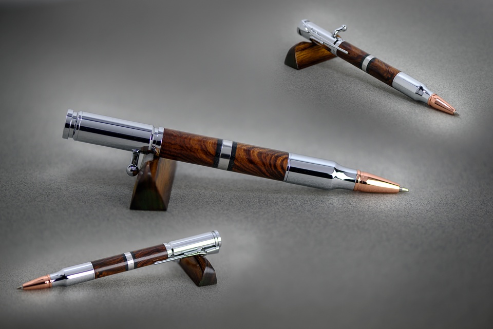 Nothing too spectacular except it is a first for me. I've never put a band of metal in a pen. I'm making a stainless steel knife with desert Ironwood that has black liners. So, I made a pen to match--desert Ironwood, black liner, and stainless steel band.