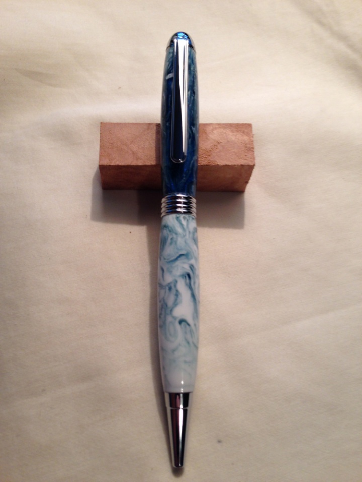 The acrylic pen looks nice! The upper and lower barrels look very different in coloration. Wondering if it was from the same blank. But, very nice!