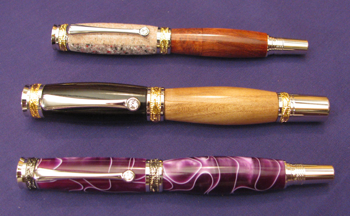 Tough day at the office, turned these out. Corian cover Amboyna, African Blackwood over Maple and a Beartooth purple swirly gizmo.