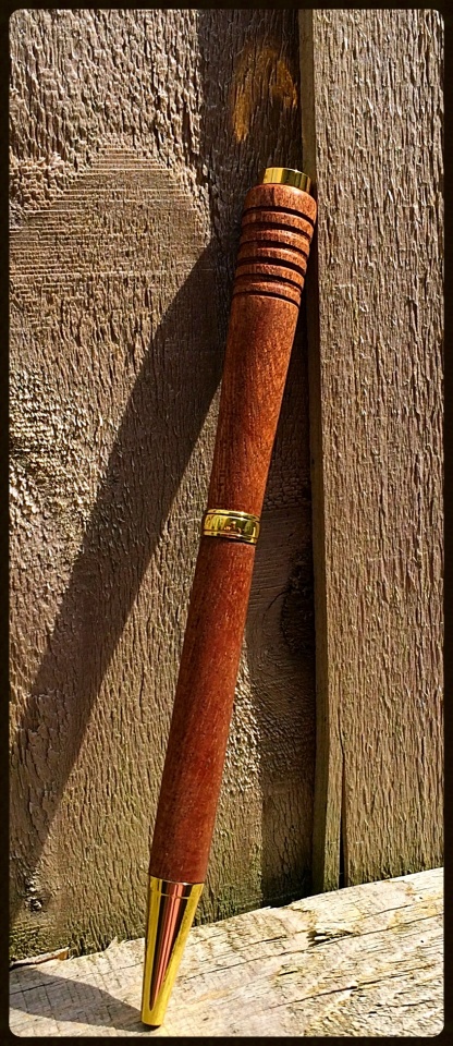 Sepele wood and I didn't use the pen clip this time. Made some v's but they're not even depth and distance. Practice makes perfect I guess.