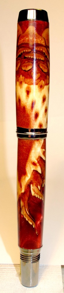 This is an open Knobby Pine cone that was cut into quarters and cast with metallic red powdered pigment. The open leaves give a really unique appearance. The kit is a Jr. Gentleman.