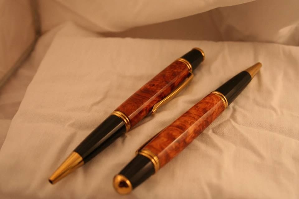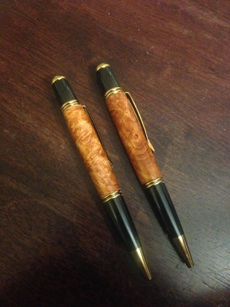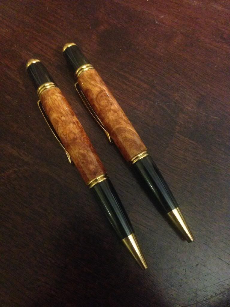 Since I stocked up on Le Roi's during Smitty's close out deal, I figured I'd start a few this weekend. This nice pair is made with Afzelia (I believe) burl that I bought from one of our Austin members. I think they came out well. C&C welcomed and appreciated.