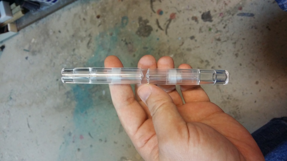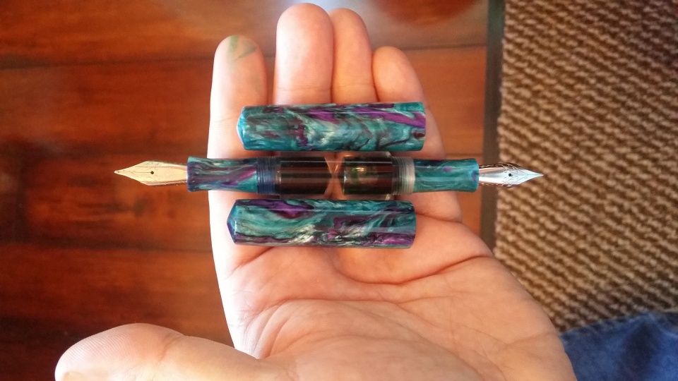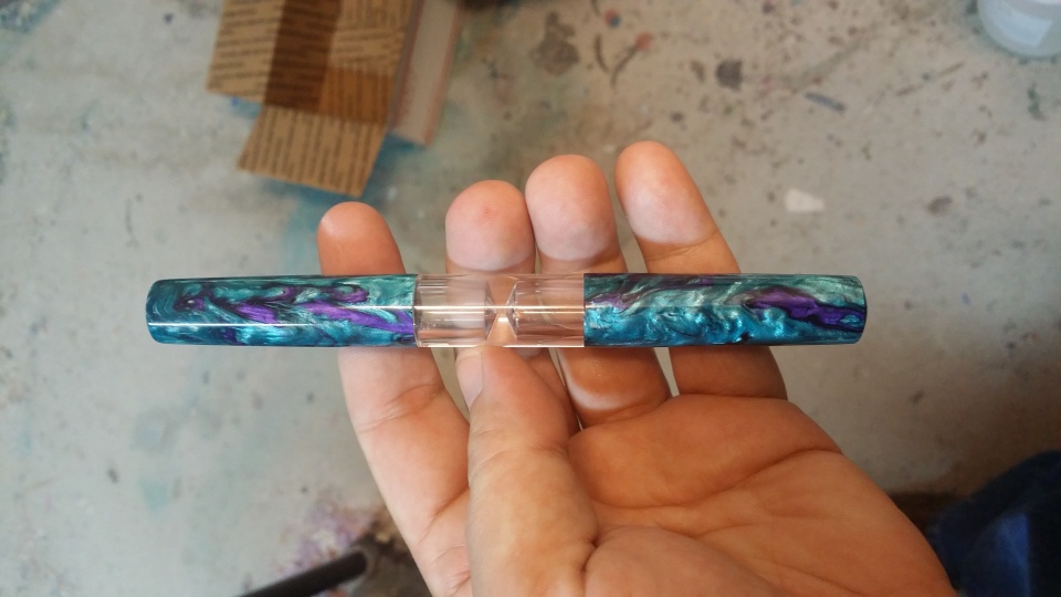 Next has a clear acrylic center portion. The caps and sections I made the resin myself.