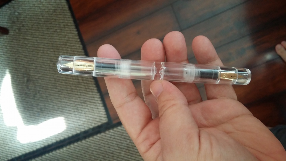 First up is a total Demonstrator style. Everything was made with clear acrylic and has two 18k nibs.