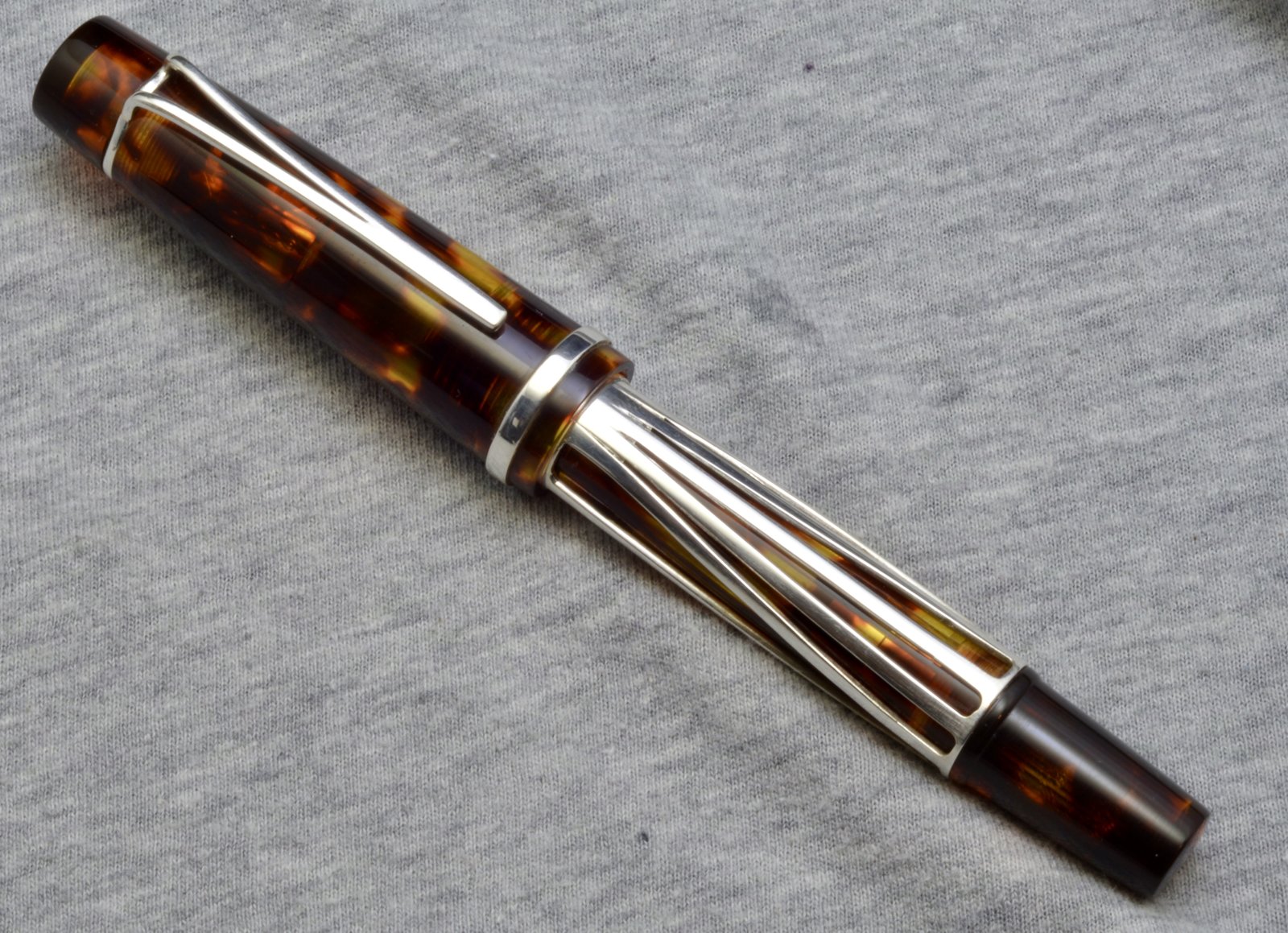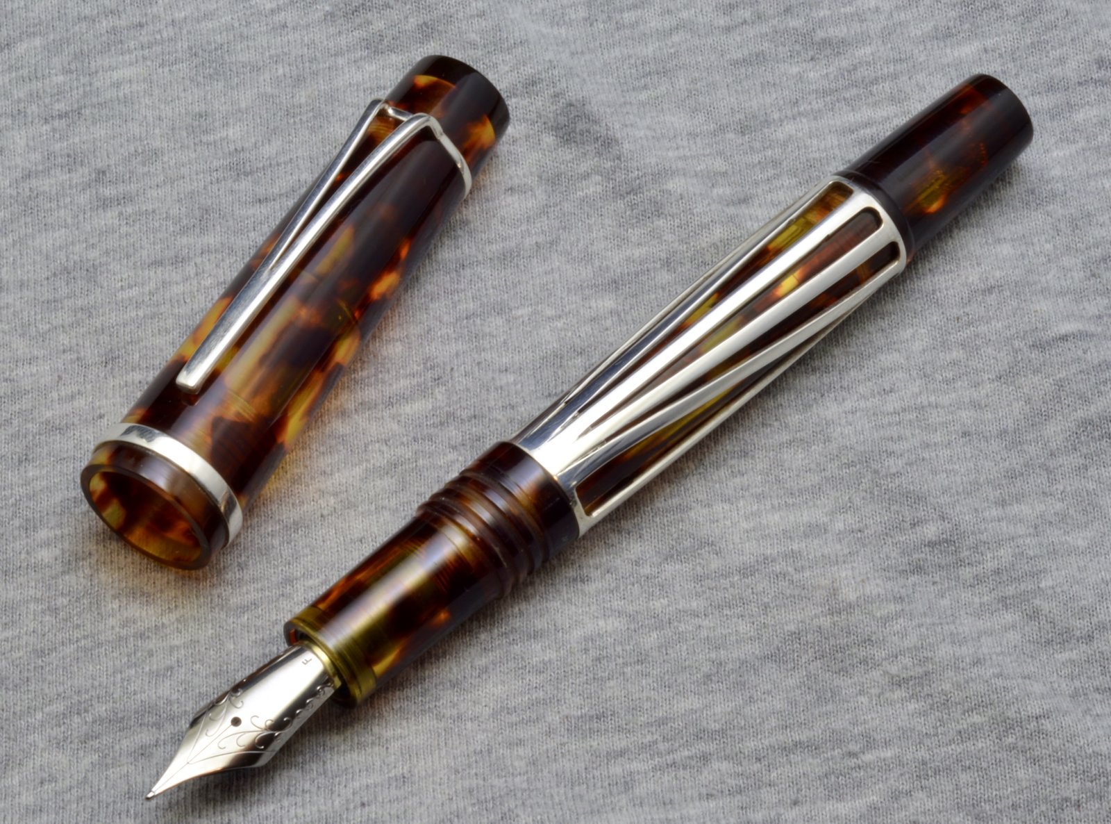 I finished this pen up today. I made it from tortoise shell acetate, and fabricated the metal components from argentium silver wire. This was a lot of fun to make, and challenging as well (especially soldering the overlay together), and I am pleased with how it turned out .