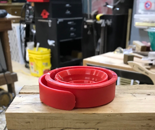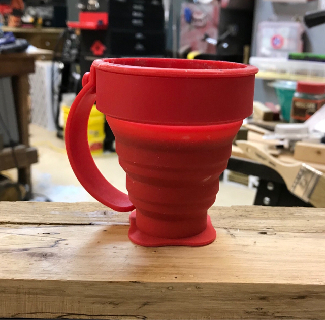 So was at a hardware store (Ace or Tru-Value, don't recall) and in the clearance bin area were some collapsible travel cup/mugs. Hmmm, all silicon except the support ring and handle on the outside. May be able to use it for left overs and drippings.