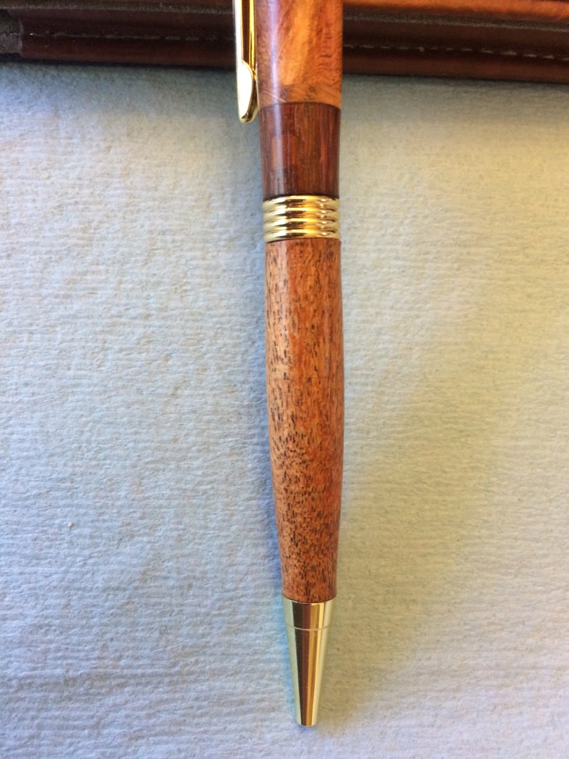Nice pens! Good accurate segmenting and nice finish. I have a bunch of odds & ends of wood and acrylic I get when I trim a blank on the BS. It cuts down on time squaring the blank in the pen mill.