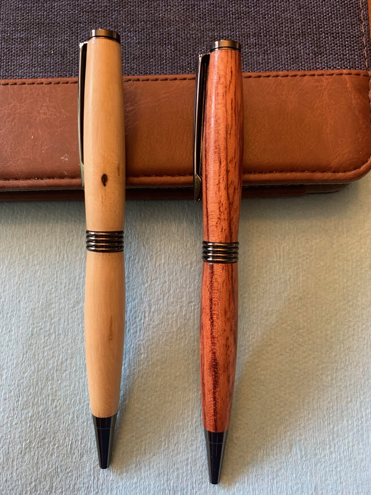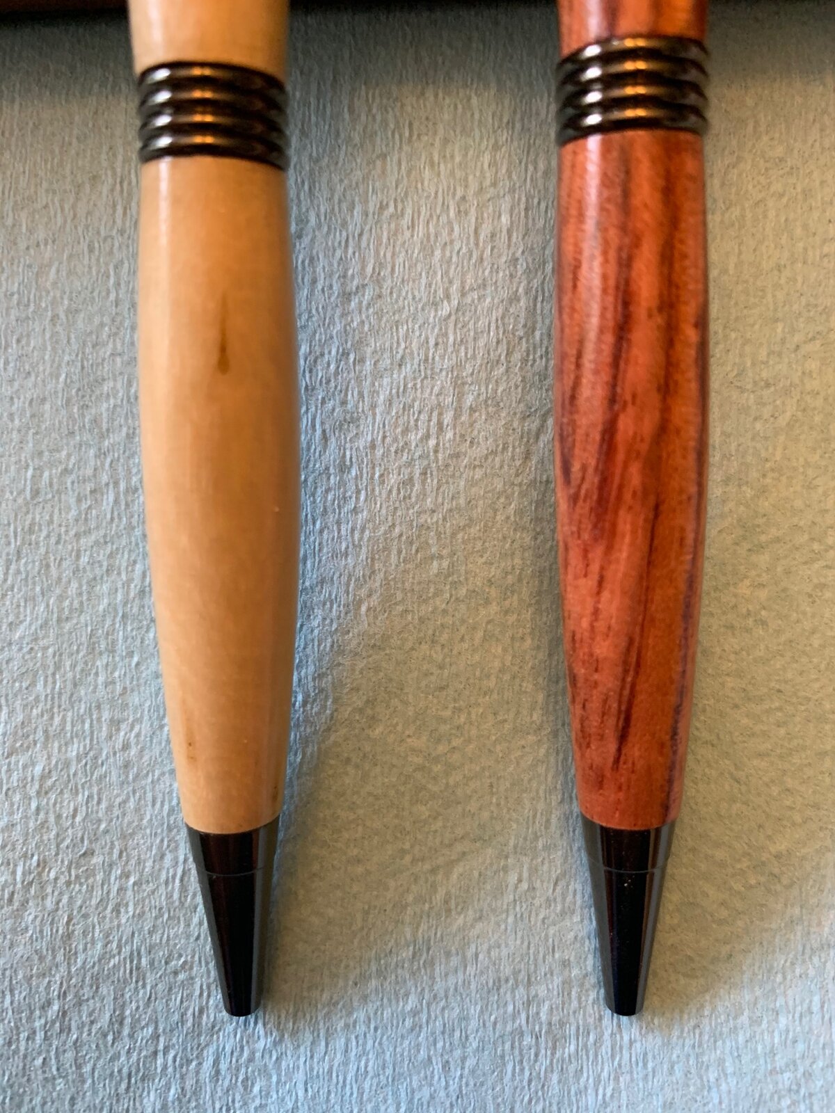 Greetings from Nebraska! Nice looking pens. I always find that turning from wood I harvested in the yard always kicks my satisfaction level up a notch! We had a Bradford Pear removed from our yard last year and I saved a few nice sized branches. Regards, Dave