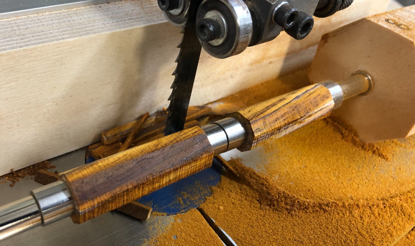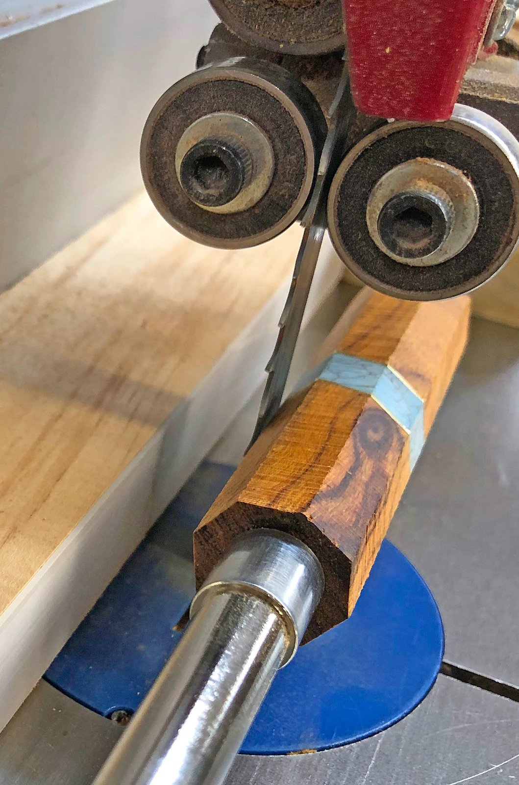 Router table or band saw: The issue here is how convenient it is to use either. I don't use my router table daily, sometimes weekly or even occasionally monthly, and the table gravitates to a "catch all" table. (And my router table has two routers in it.) When I am making segmented blanks, I have learned to clean my router table off in advance. I am not a "neatnik" 🙄, and have to prepare before hand, but when I do, it sure helps.