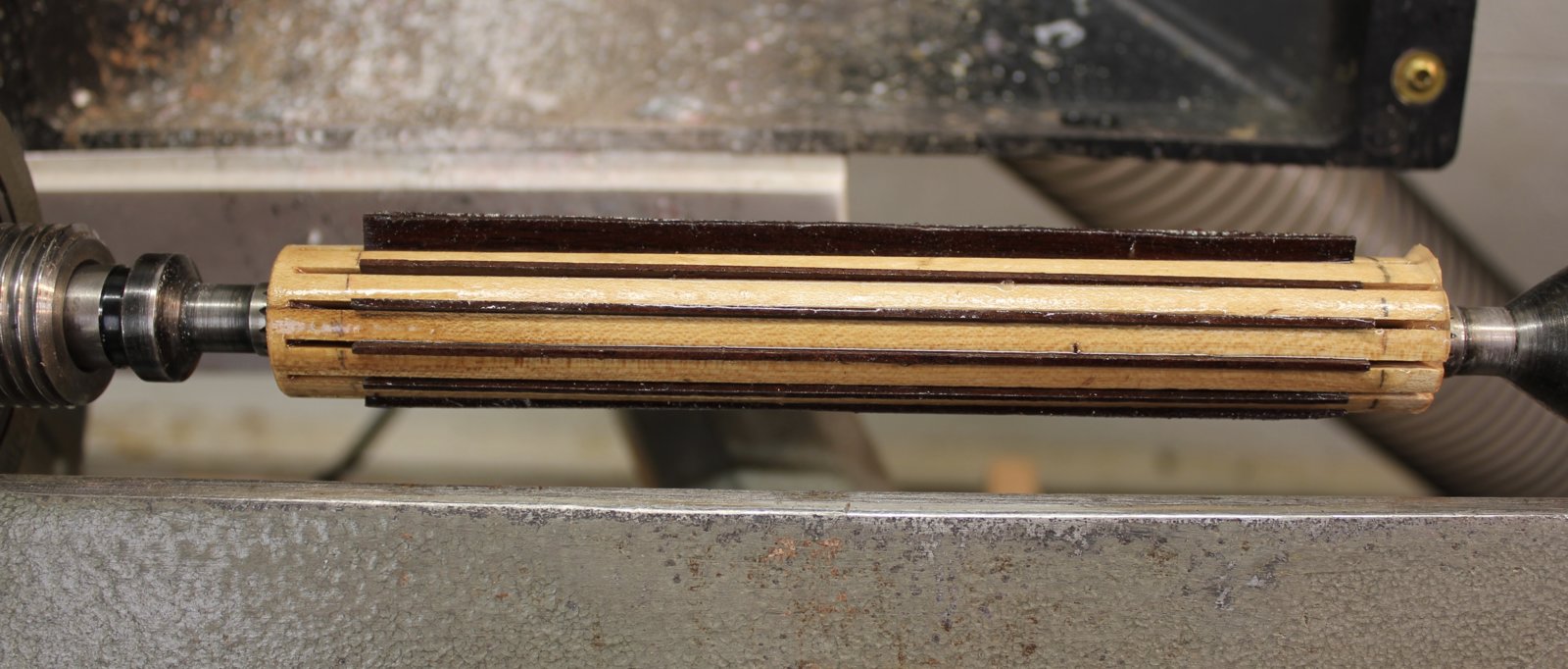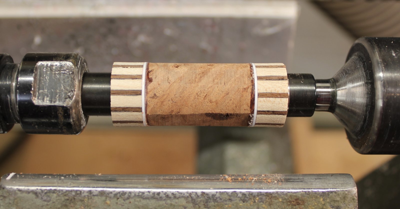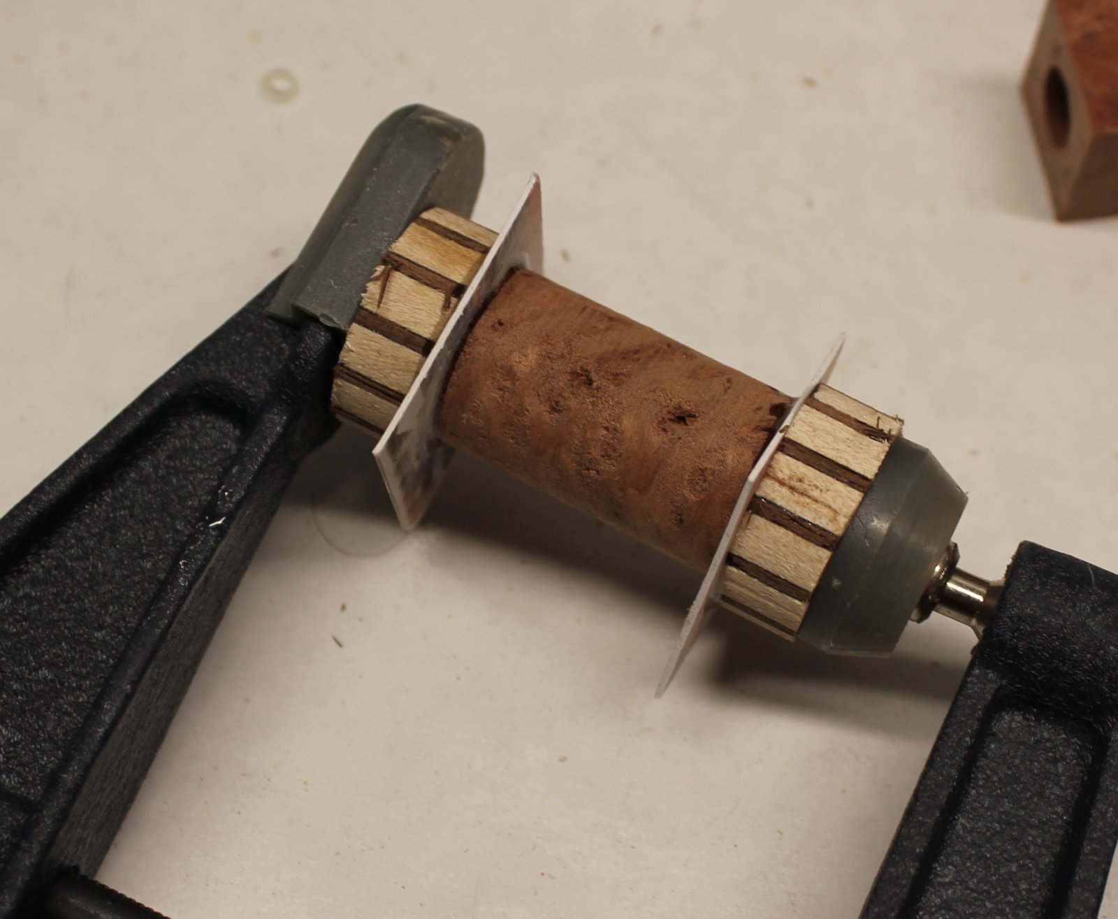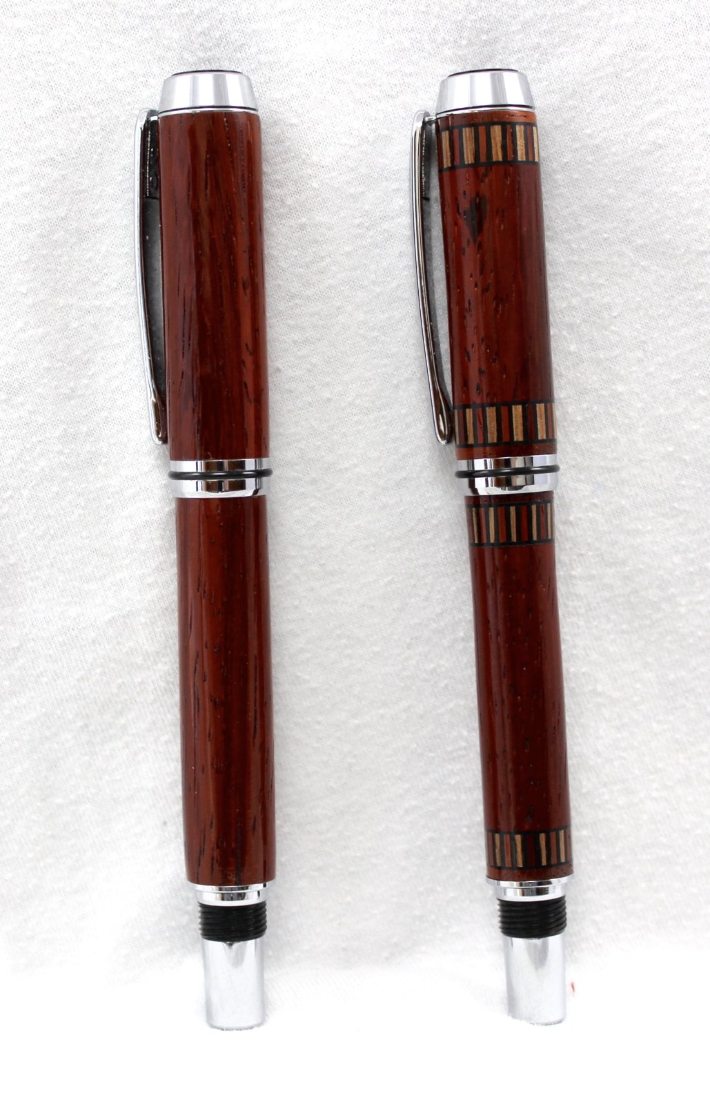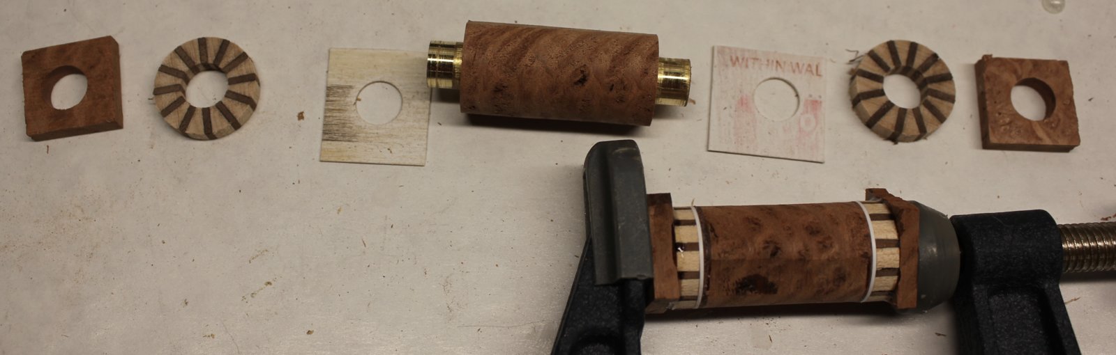 This is for a special order where the wood was supplied to me. The trim rings were made from a spindle of Curly Red Leaf Maple, and a block of Black walnut. The rest was a beautiful Redwood Lace Burl.