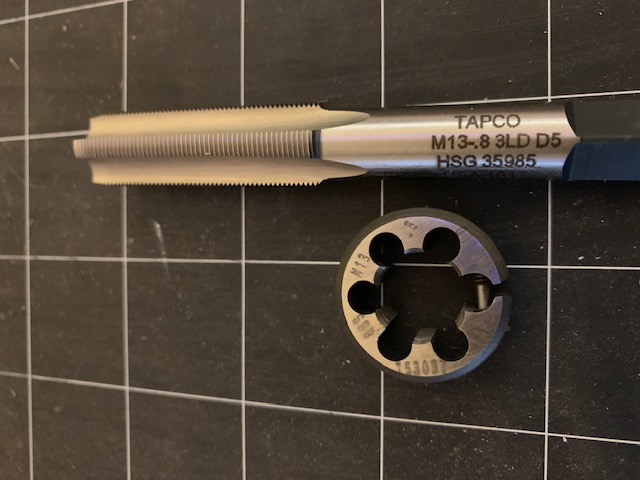 Brand new, never used m14 x .8, m13 x .8, and m12 x .8 triple start tap and die sets.