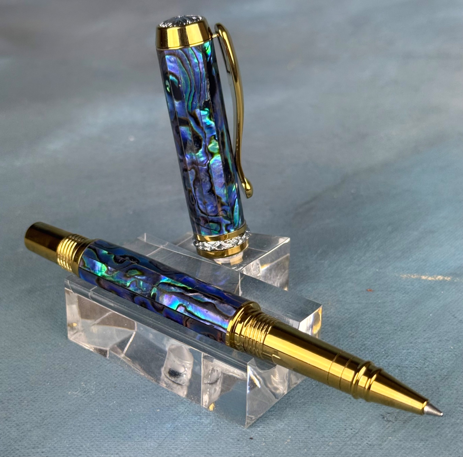 You inspired me to bite the bullet and pick up an abalone blank from ExoticBlanks. I've always been a sucker for abalone, and I knew about those blanks, but seeing it turned, I had to try it. I'll be putting it on a black chrome and gold Diamond Knurl kit.