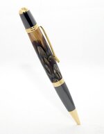 Remember that you are photographing the reflections when you have a glossy surface. The most difficult thing I have ever photographed was a mirror. For a mirror you must plan the reflection. Same thing here. The easiest way to eliminate some of the reflections is too not use white on a black reflective surface. It will turn what should be black to gray. Backrounds for pens are easy---mostly because pens are small. You can go to Michaels or hobby lobby and have a new background for .50 (Cheap poster board. The cheaper-thinner the better)