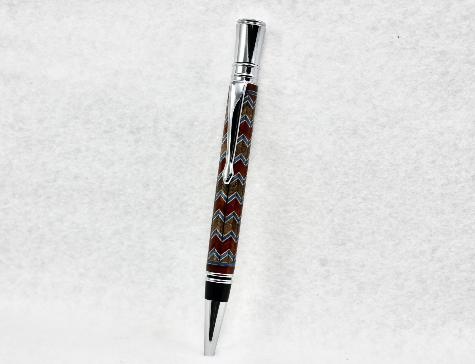 John, I am a little OCDC when it comes to sizing and measuring. I try to do with wood what is only possible with metal in measuring - and it does not always work that good for me, but I keep trying. I mark the center spots precisely before wrapping with gauze. On the stripe pen, even .1 mm off of center shows up when turning. (You know that but I wrote it for the benefit of others.) I make my stripe pens two different ways - square and octagon, but always with solid center and drilling the hole after the blank is made. (I mention the Mark James method below) Wrapping is done after the parts are in place as a blank.Now I have heard this method of wrapping gauze and CA so many times here for over 15 years, and I am working on a method that I think will help in the future but that is for another day. My question is if you wrap all this gauze and CA how in the world do you hold the blank so it can be drilled true down the center. Are you returning it round so it can be held by a chuck of some sort. ?? Now I am an old timer here so do not pull wool over my eyes. I want to know your true method so it can be documented for future inquiries. If you have photos, even better. Go for it.![]()