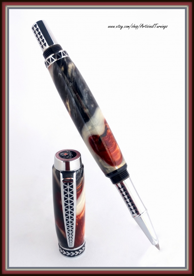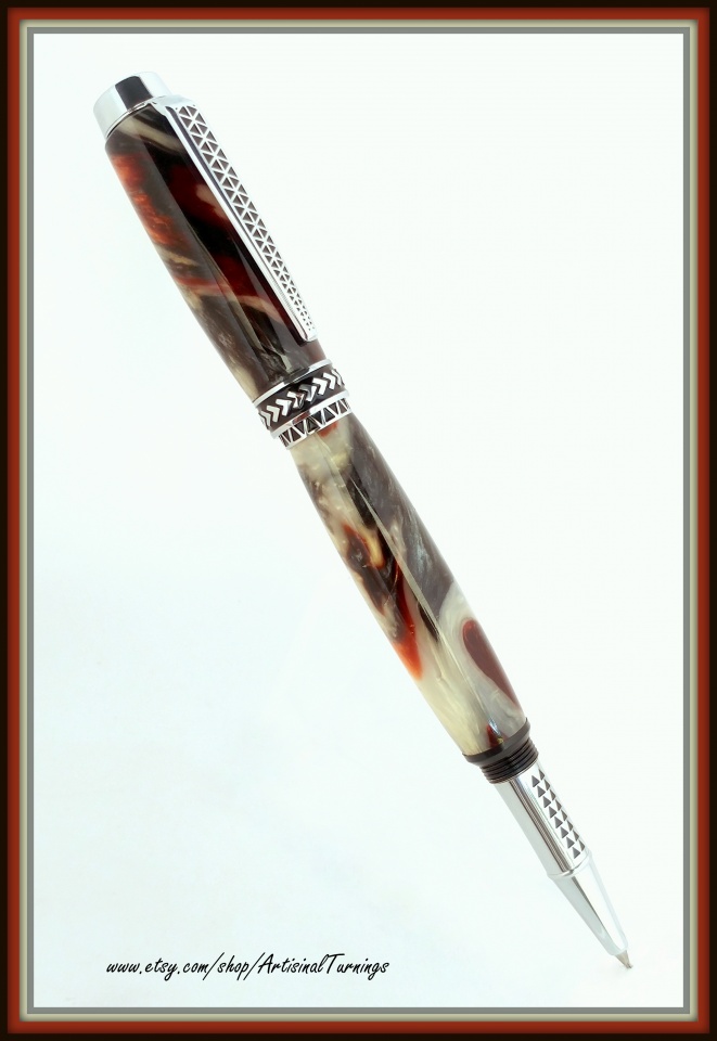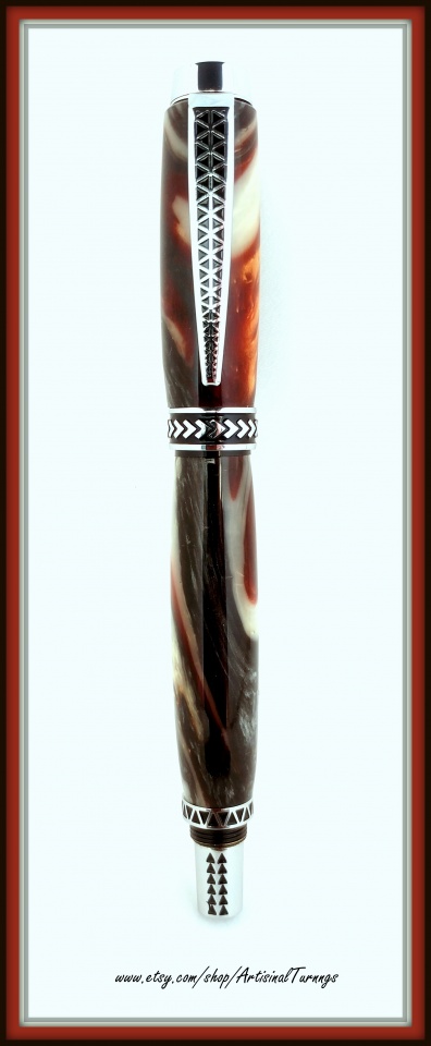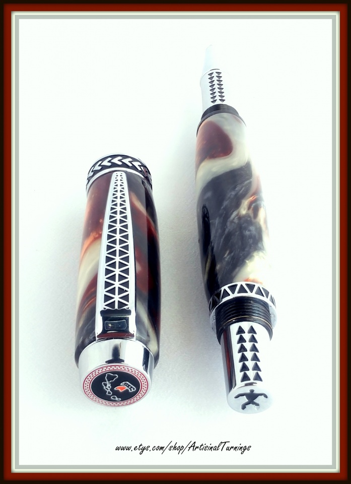 A Tapa Traveler in Earth's Core - one of my favorite blanks. This is my second Tapa Traveler and I really like all the detail in these pens, but I once again had problems with the barrels not matching up with the pen parts. The instructions are poor and apparently the bushings are not matched or I'm doing something wrong. I had to re-turn two ends and make a custom trim ring to salvage the bottom barrel because the nib end was turned too small. Anyone else have any experience with these kits?