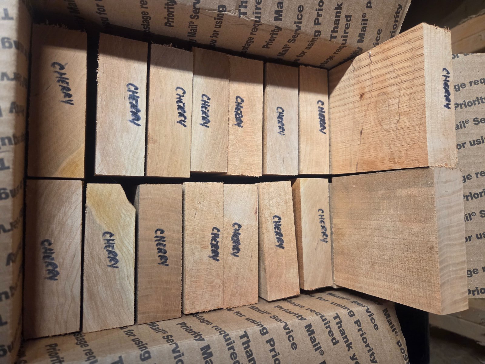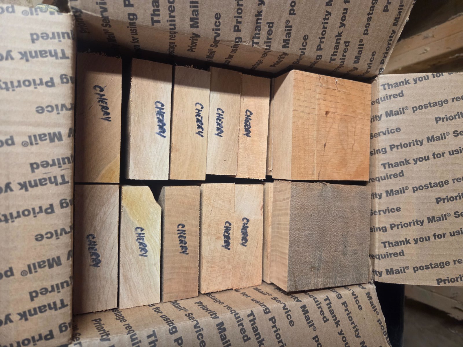 A couple of MFRB'S of turkey pot call blanks. One is all cherry and one is all cedar. If two get together and want the boxes split, I will do half cherry/half cedar. $40/box shipped US only.