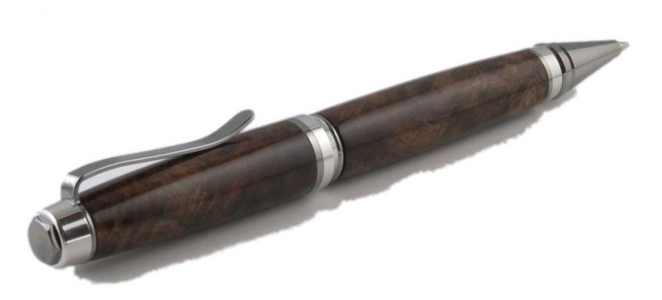 Turkish Walnut on Hybrid Cigar with Blk Titanium and Platinum, Longleaf Pine Burl on Desire.