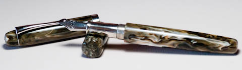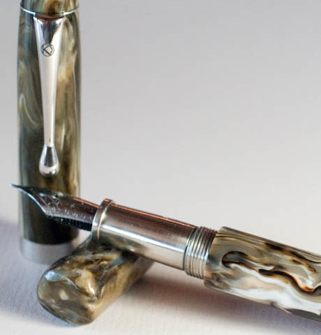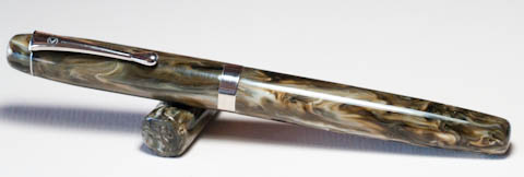 ...you'll never know what you've got until you have at it. This is a piece of 100 year old French catalin that a friend chose for a custom. I have to say, I was astonished when I turned it down and discovered what a fantastic figure it had lurking beneath the surface. The trim is nickel silver, kept as simple as possible so as not to detract from the figure in the material.