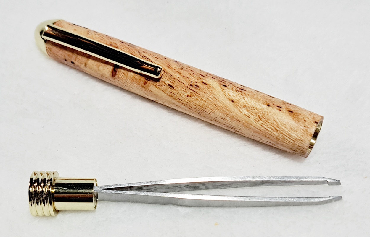 This is a Tweezer kit from PSI, in gold. The wood is locust tree burl. The finish is Pens Plus. Fast, simple, fun kit.