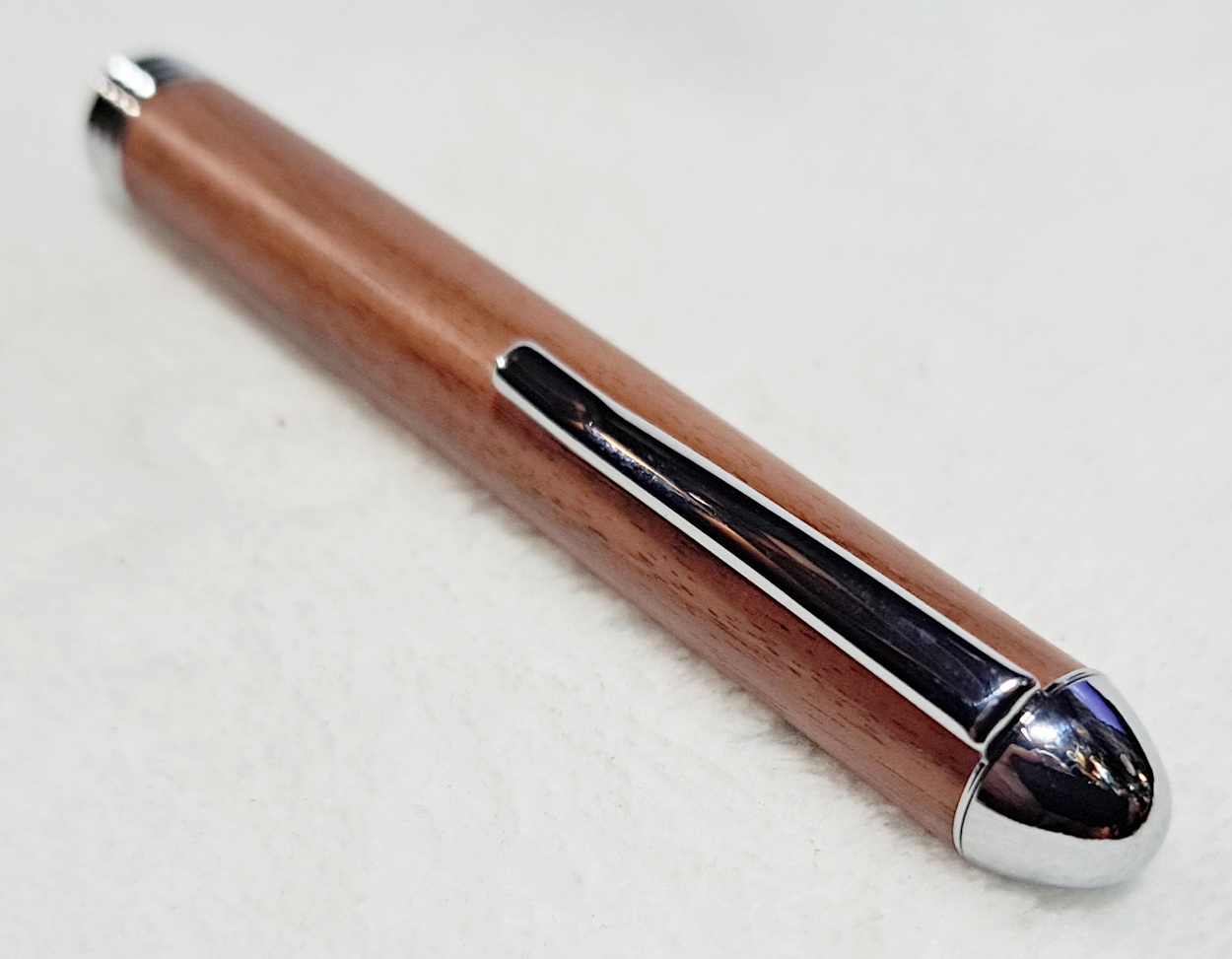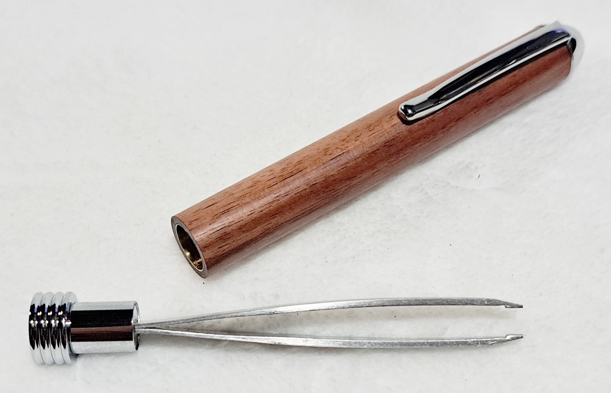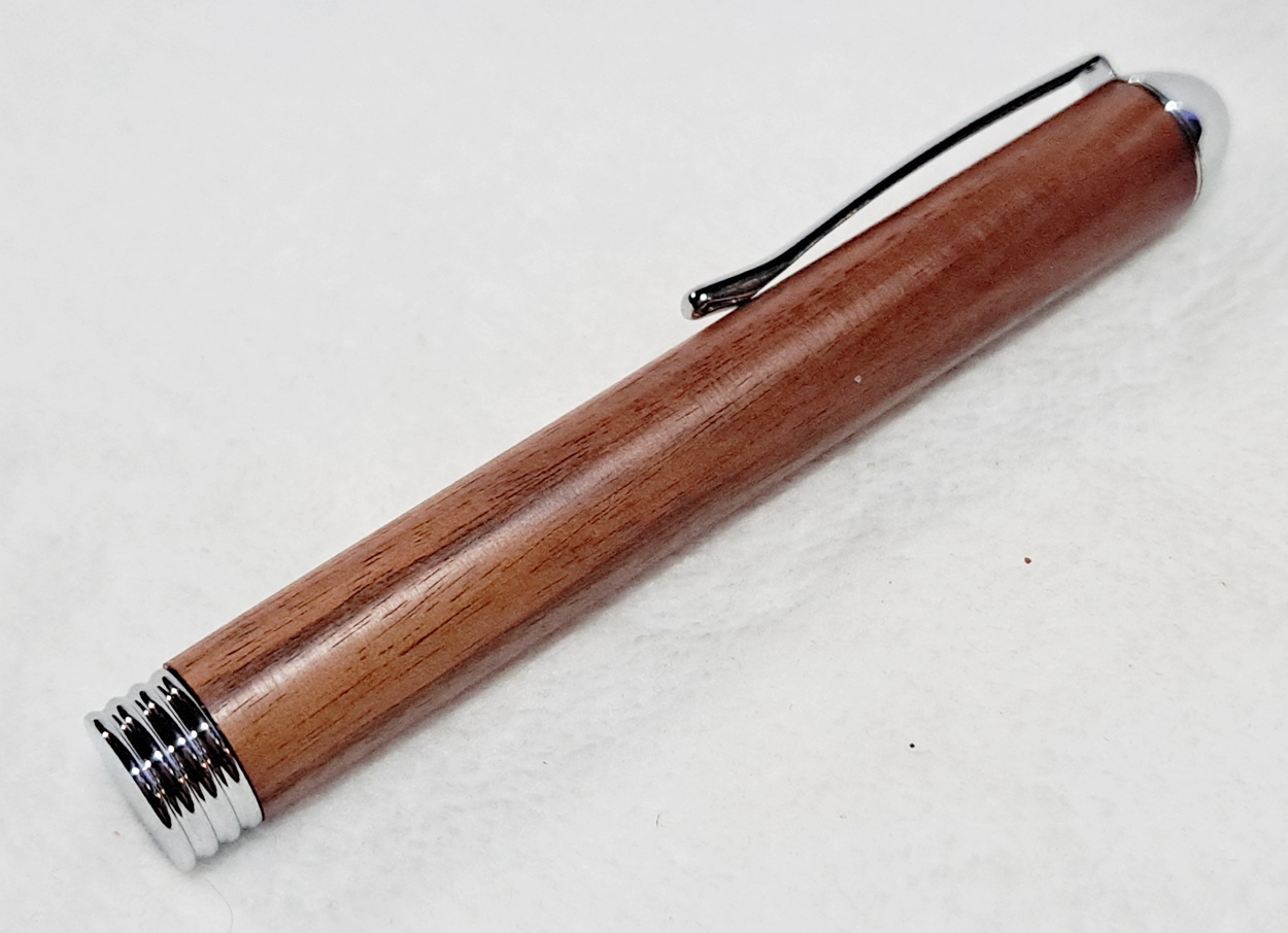 This is a Tweezer in chrome from PSI. The wood is Bolivian rosewood from Woodcraft. The finish is Pens Plus.