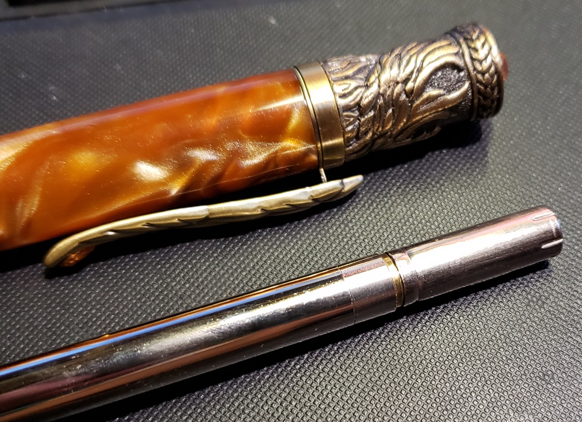I just started turning, this is only my 11th pen but I came across an issue that I can't figure out. This is the Rising Phoenix style pen from PSI an after I put everything together, the twist mechanism will not engage if the pen is fully together. The barrel will just spin. The transmission will only engage if the barrel is pulled out about half an inch and turned. See picture. Any ideas or suggestions to fix? If I wanted to take the end cap off to inspect, what's the best way without damaging the pen?