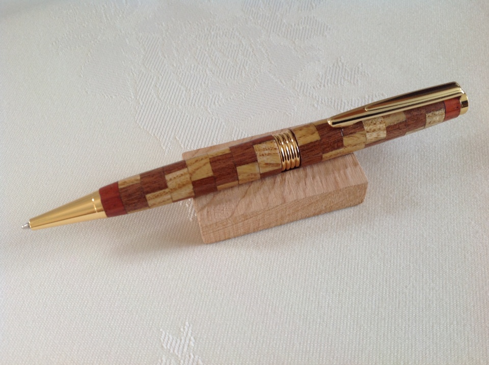 my first pen of this type i put a peace of padauk at each end as a contrast.