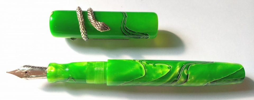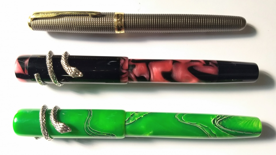 The acrylic material very high quality and it machines like ebonite, well , almost. Regret the photo quality, actually the pens look better.