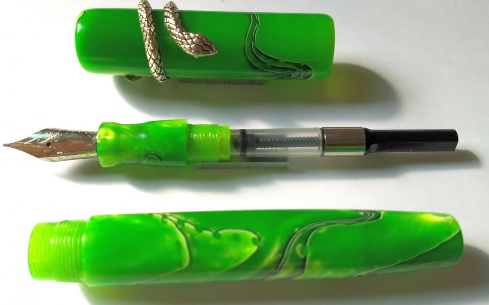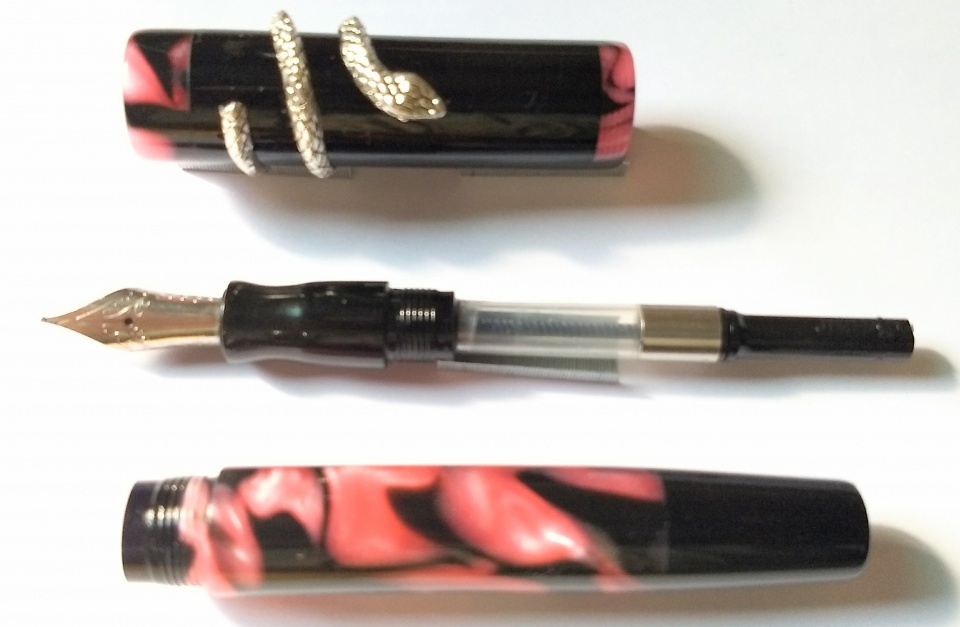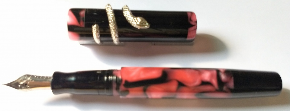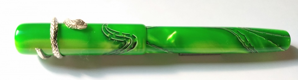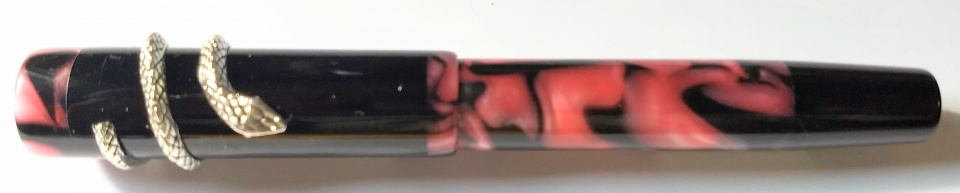 This design is a new tryout and I feel quite happy the way the pens turned out.. Clip-less model with clip fitment provision kept in the dark pen, slip on snake type roll stopper.